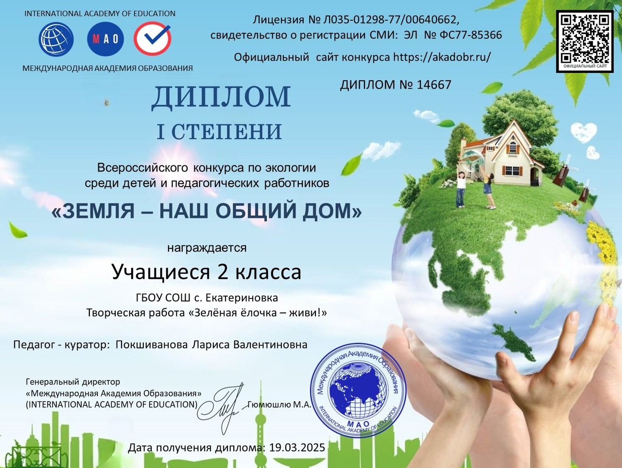 - Диплом Органика, Диплом "Зеленая ёлочка - живи!